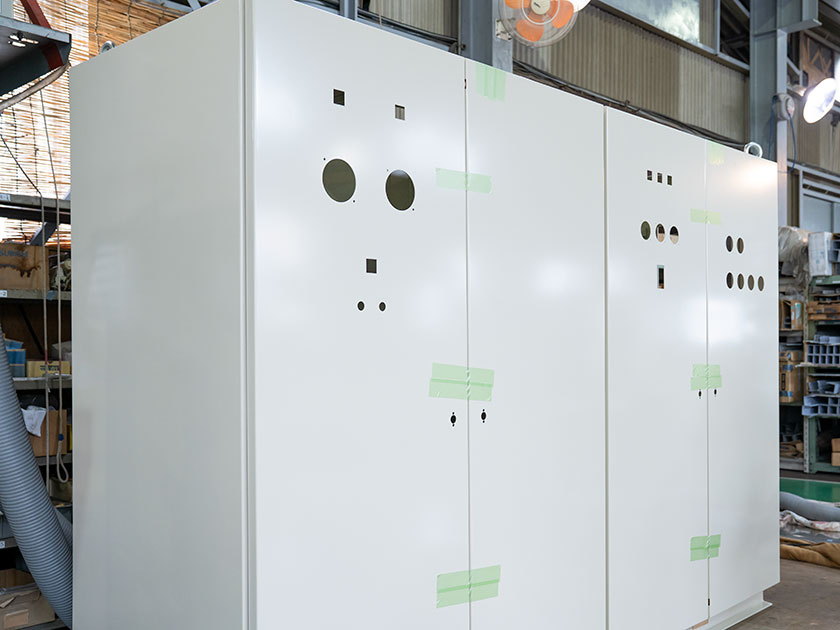 特に配電盤・制御盤の製作を主力とし、製缶から塗装まで一貫して行える体制を整えております。