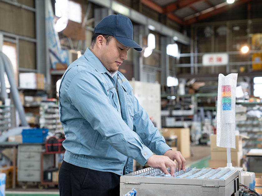 本社工場にて部品取付、組立、結線を行います。
