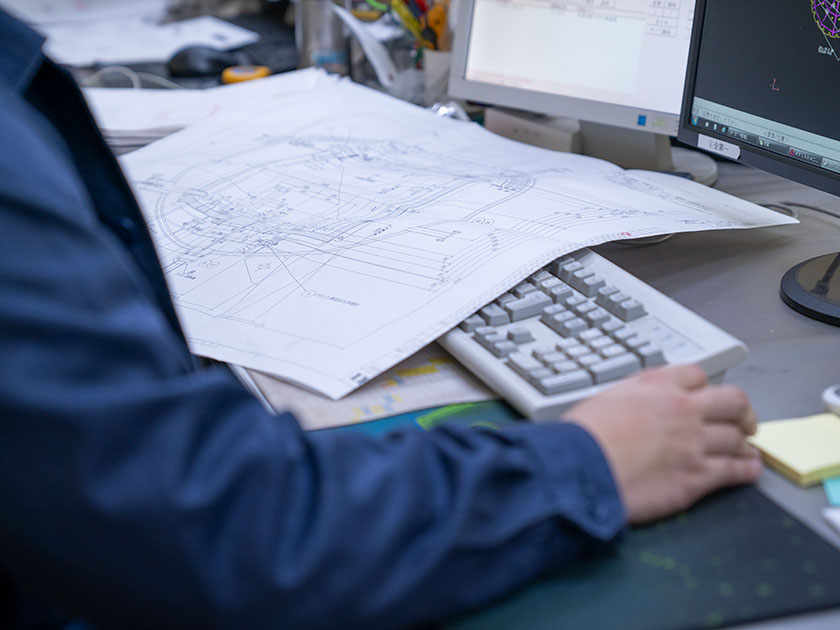 お客様より図面をいただき、CADへ書き出していきます。ここで図面が間違っていないかなどの確認も行います。