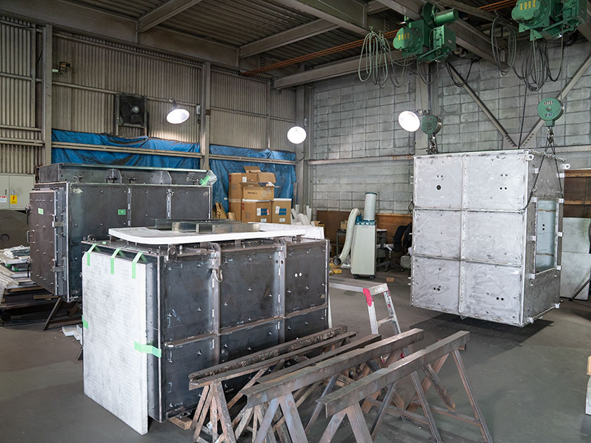 第二製缶工場で板金加工、本社工場で溶接、製缶を行います。